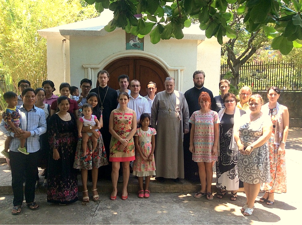 Представитель Русской Православной Церкви в Таиланде архимандрит Олег (Черепанин) в ходе своей пастырской поездки в Камбоджу возглавил служение Божественной Литургии в престольный праздник православной общины Пномпеня – день памяти Великомученика и Победоносца Георгия в Свято-Георгивском храме при Болгарском посольстве.