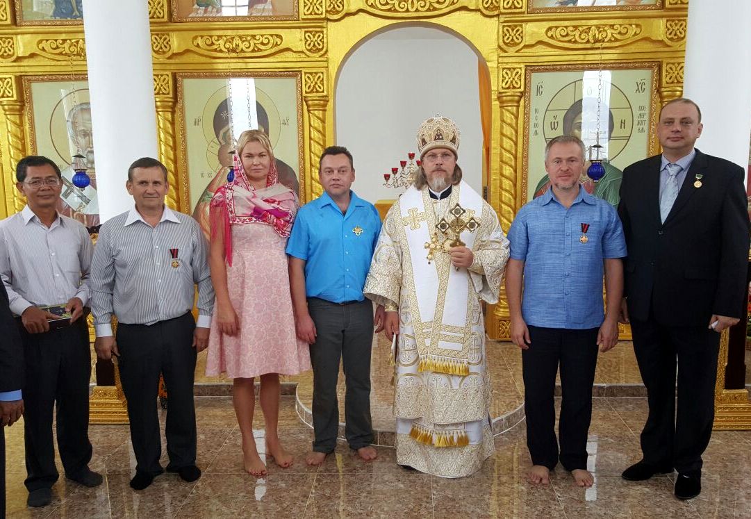 От имени и.о. настоятеля и прихожан камбоджийских приходов, выражаем сердечную благодарность за благословения и содействие Святейшему Патриарху Московскому и всея Руси КИРИЛЛУ, Министру Иностранных Дел Российской Федерации С.В. Лаврову, Высокопреосвященнейшему Марку архиепископу Рязанскому и Михайловскому, главе Рязанской митрополии, Представителю Русской Православной Церкви в Таиланде архимандриту Олегу (Черепанину), всем благотворителям, жертвователям и трудящимся.