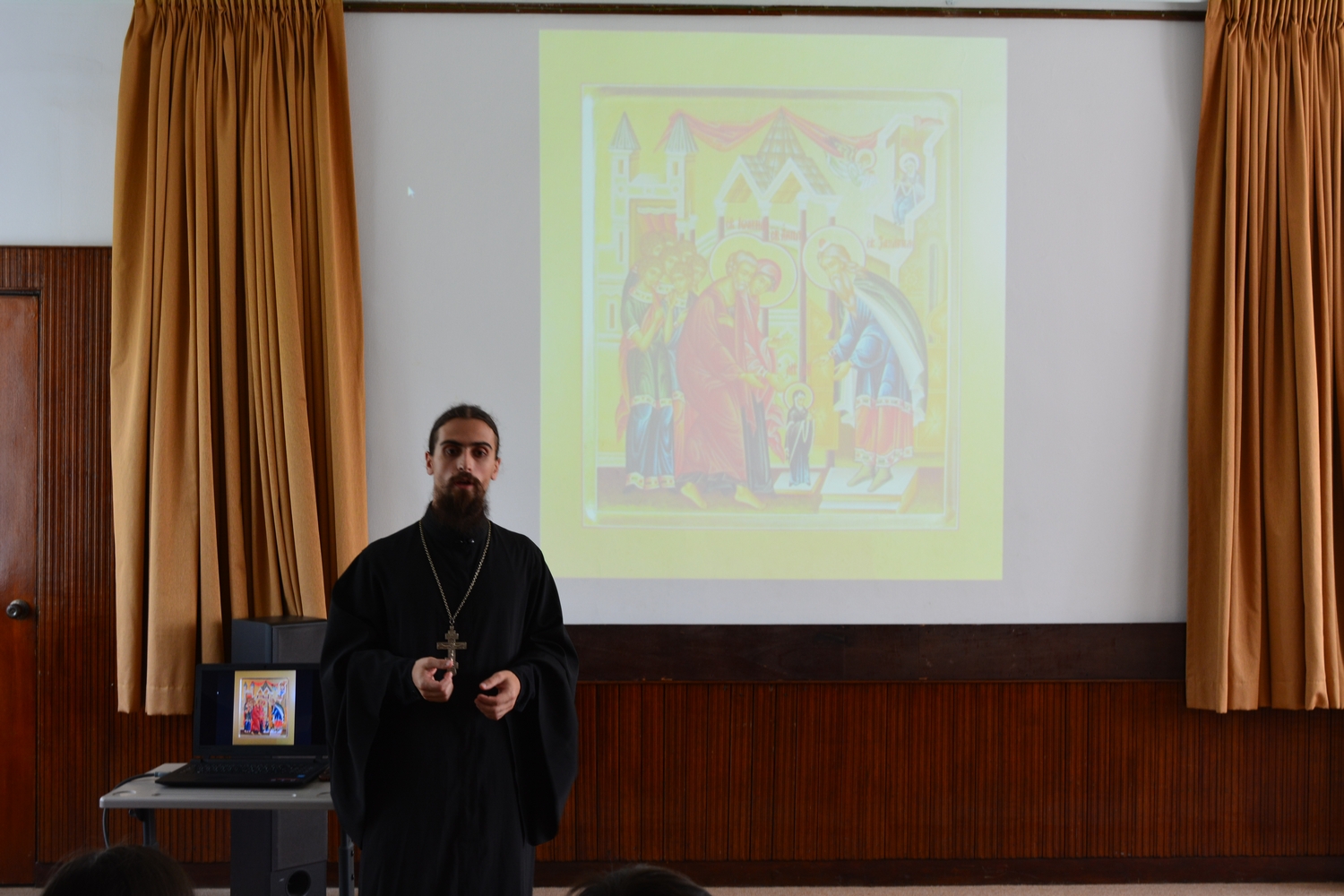 Тема нынешней беседы была сформулирована в виде вопроса «Бог стал Человеком… как и для чего?» и вызвала горячий отклик слушателей. Священник рассмотрел основные Евангельские события от рождения Пресвятой Богородицы до последней недели земной жизни нашего Спасителя.