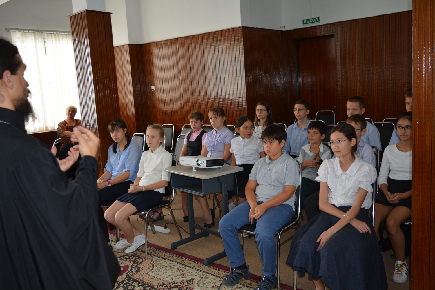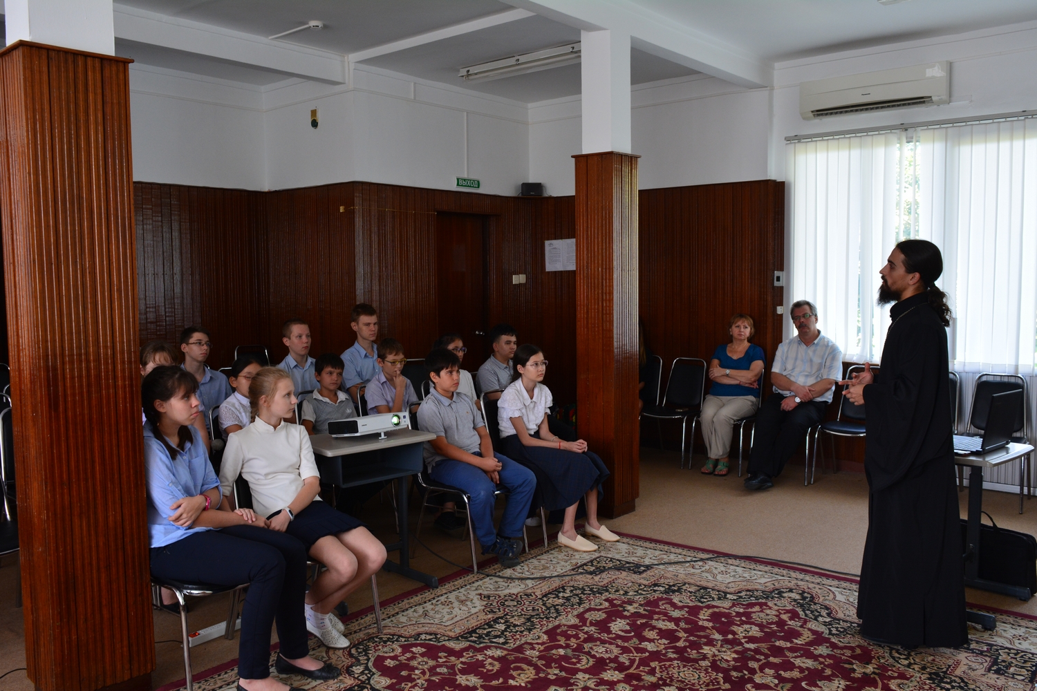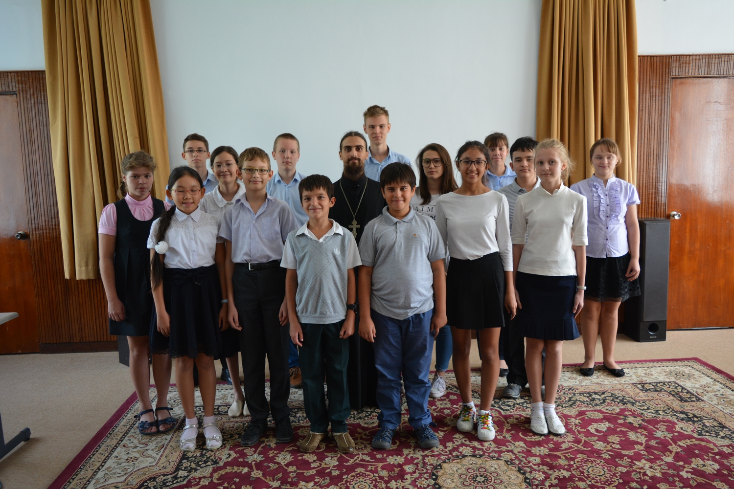28 ноября состоялась очередная встреча и.о. настоятеля православных приходов Камбоджи иер. Романа Постникова с учащими и учащимися Школы при Посольстве РФ.