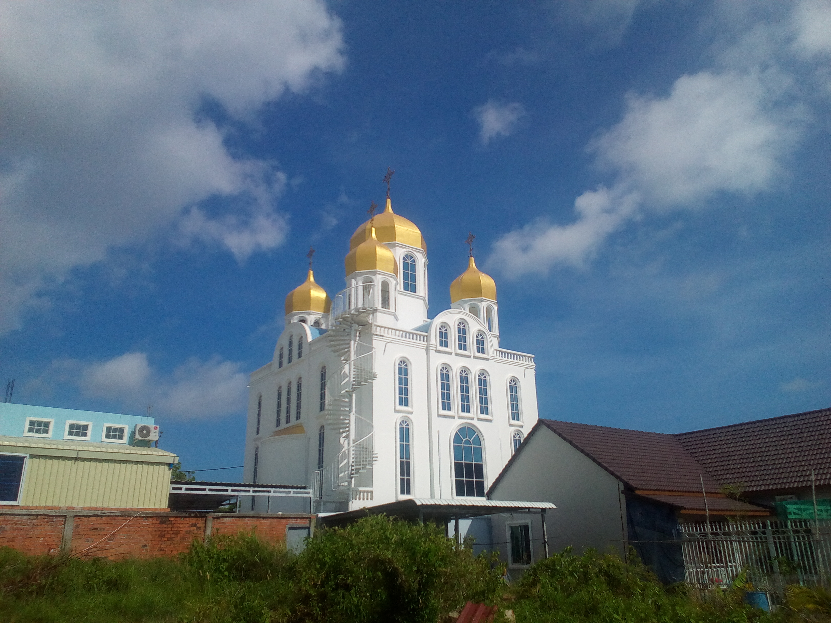 Поскольку место под колокольню после долгих размышлений было выбрано в одном из малых куполов храма, для безопасного подъема на крышу пришлось достроить винтовую лестницу и решетки. Отлиты колокола на московском колокололитейном заводе “Литекс” (http://litbell.ru/). Доставлены из России в Камбоджу компанией Nawinia. Основные труды и расходы по приобретению, доставке и строительству необходимых сооружений в разной степени легли на 3 семьи: Бакулиных, Сёмкиных и Никитиных.