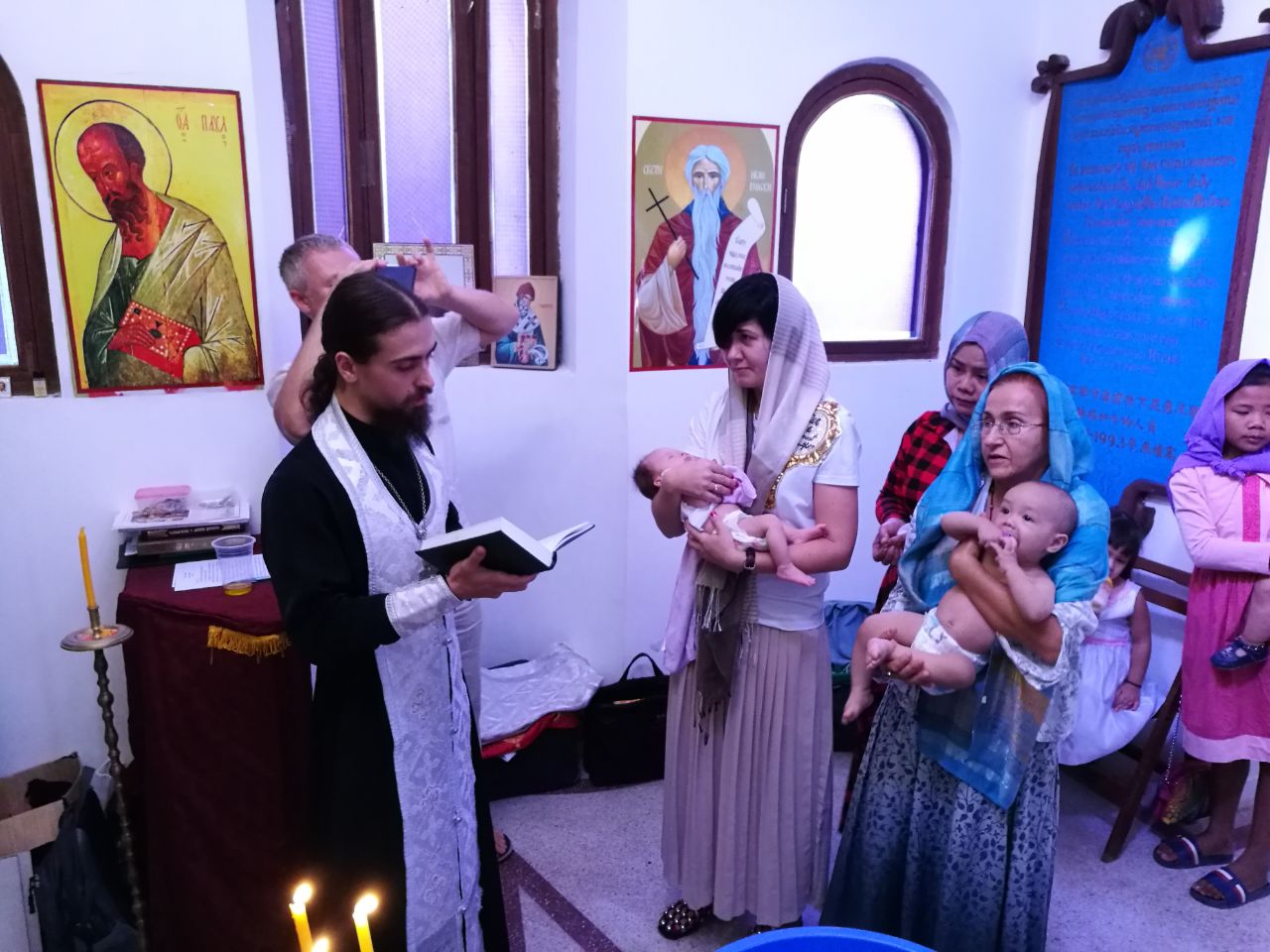 После Крещения детей была отслужена Праздничная Божественная Литургия, за которой молился Чрезвычайный и Полномочный Посол Болгарии Венцеслав Иванов. Общее количество верующих составило около 25 человек, большая часть из которых православные кхмеры. Практически все причастились Пречистых Тела и Крови Христовых.