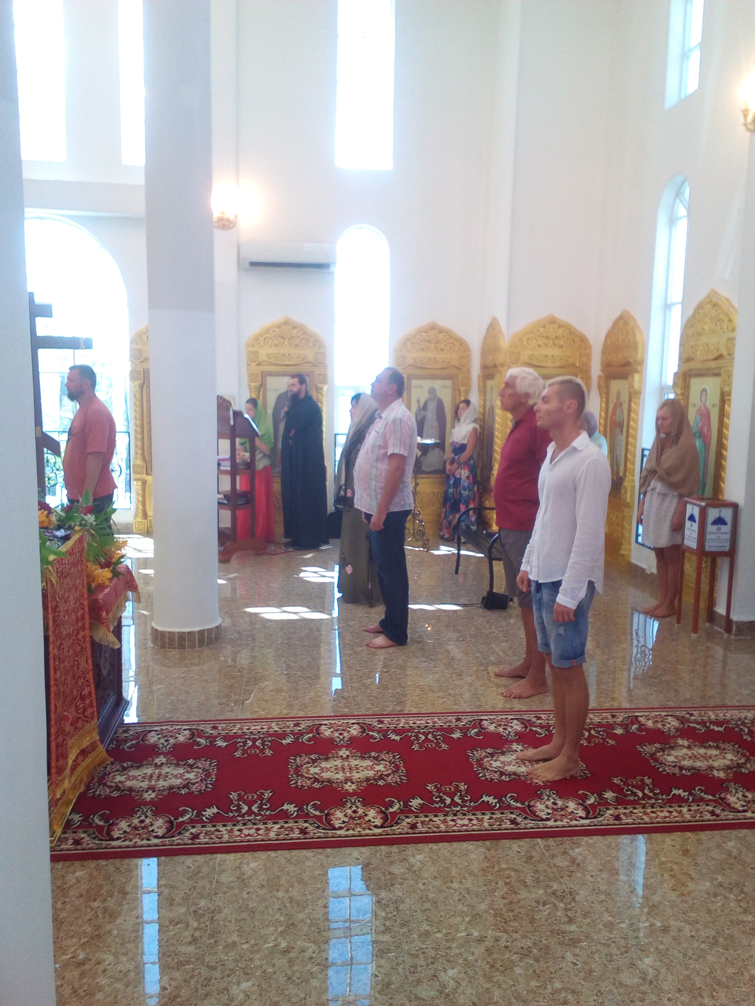 За утренним богослужением молилось около 15 человек – постоянные прихожане и гости храма. Принимая во внимание низкий сезон, можно отметить довольно большое количество пришедших на службу. Пречистых Тела и Крови Христовых причастились почти все молящиеся.