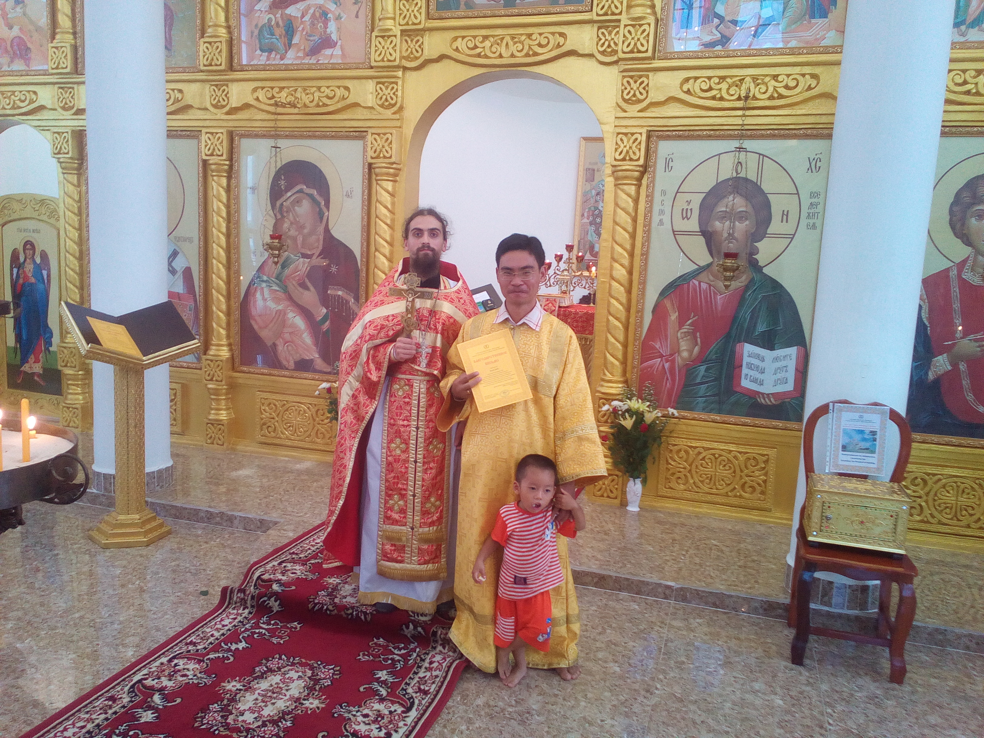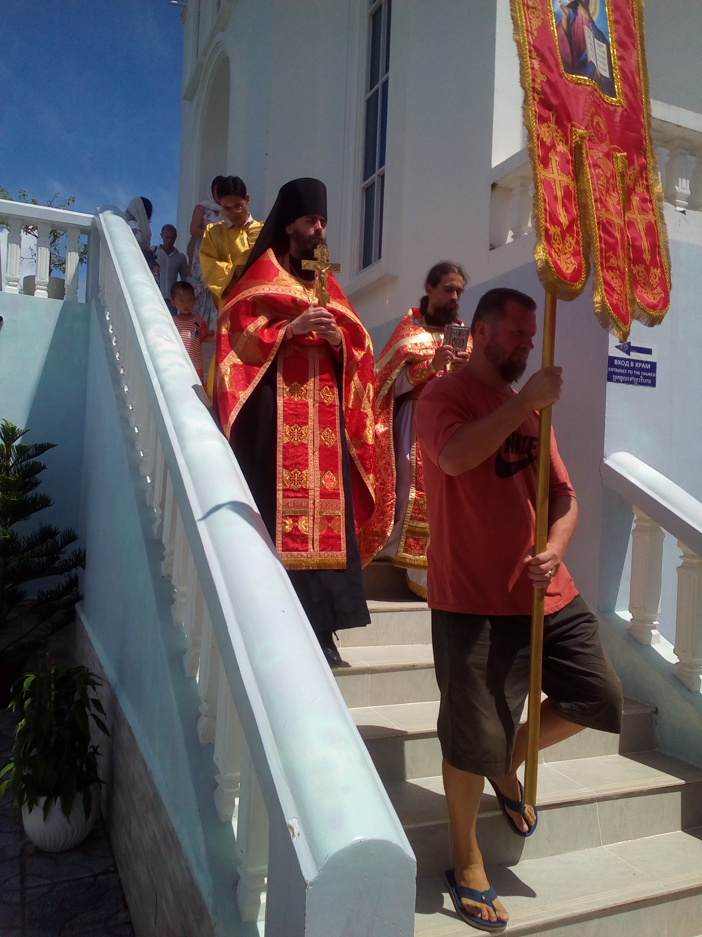За богослужениями в составе хора пел клирик Свято-Георгиевского прихода в Пномпене иером. Корнилий (Молев), специально к Празднику прибывший из столицы Камбоджи.