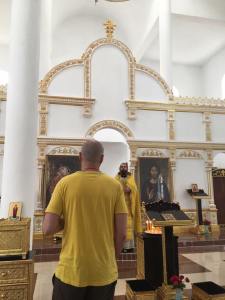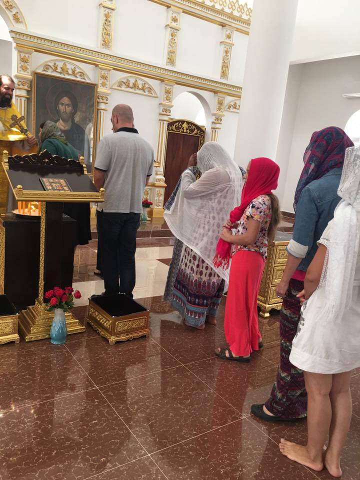На службе молились граждане самых разных стран – России, Камбоджи, Америки, Сербии и иных. Многие причастились Пречистых Тела и Крови Христовых. После службы теплое общение священника и прихожан было продолжено.
