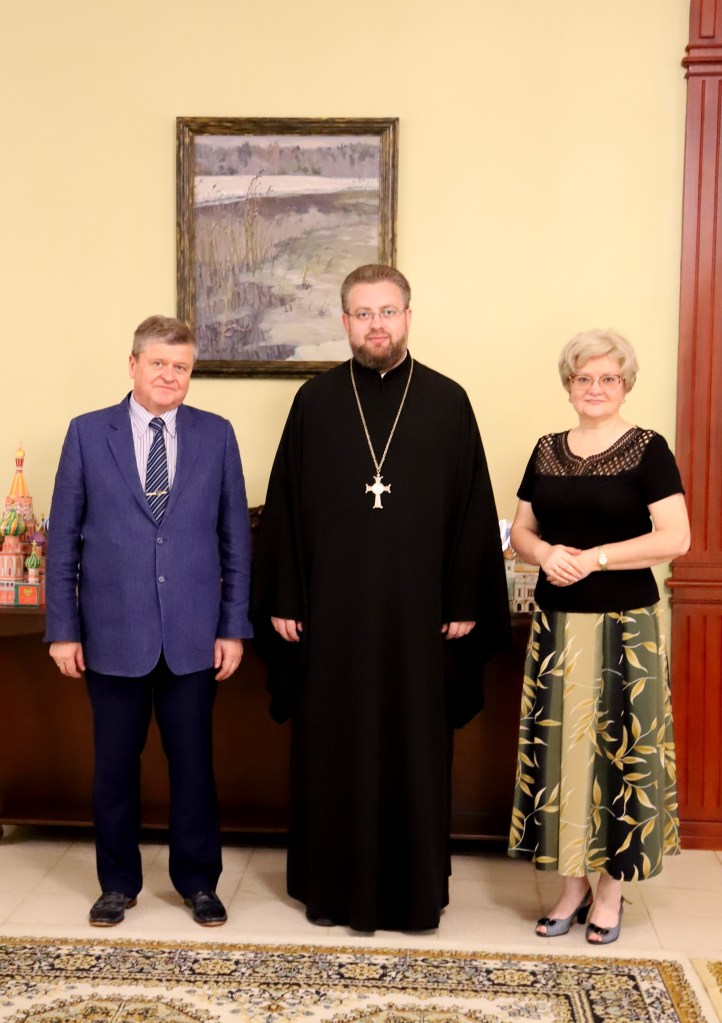 Priestmonk Paisiy conveyed to the newly appointed Russian Ambassador to Cambodia the congratulations and good wishes of the Temporary Administrator of the Diocese of Thailand, Metropolitan Sergius of Singapore and Southeast Asia, and the Secretary of the Diocese of Thailand, Archimandrite Oleg (Cherepanin), who, due to the pandemic, could not personally greet the new head of the Russian diplomatic mission.
