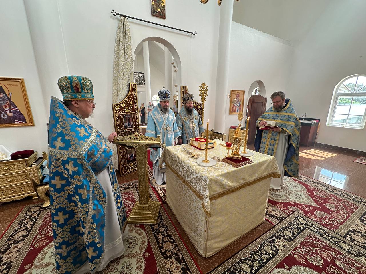 1 сентября 2024 года, в Неделю 10-ю по Пятидесятнице, в день празднования Донской иконы Божией Матери, Патриарший Экзарх Юго-Восточной Азии, митрополит Сингапурский и Юго-Восточно-Азиатский Сергий, временно управляющий Таиландской епархией, совершил Божественную Литургию в храме великомученика Георгия Победоносца в г. Пномпень, Королевство Камбоджа.